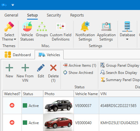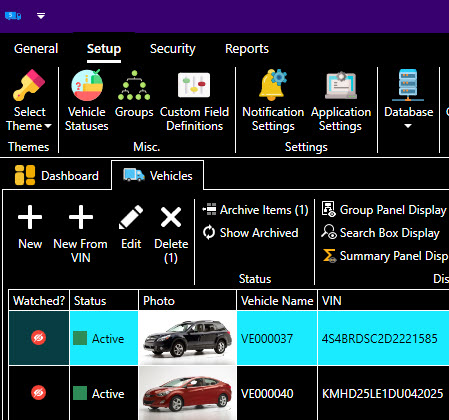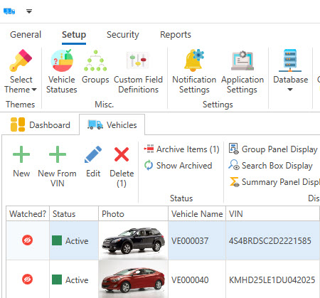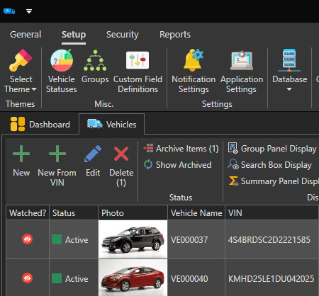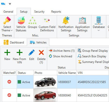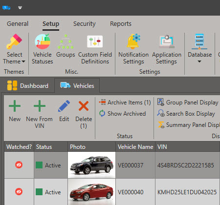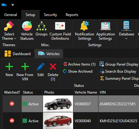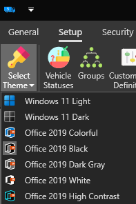 You can change the visual appearance of the application by choosing from one of the seven themes available. To do this, click on the "Setup" tab then on the "Select Theme" button and choose the theme you want: