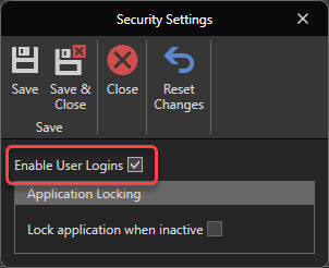 To enable user logins, click on the "Security" tab then on the "Security Settings" button:
