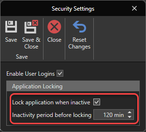 You can also choose to end a session after a certain period of inactivity. To do this, check the "Lock application when inactive" option and select the desired period: