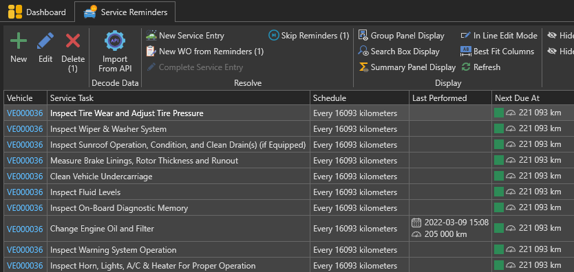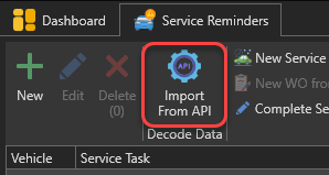 The list of service reminders will appear. Use the "Import From API" button to start the import: