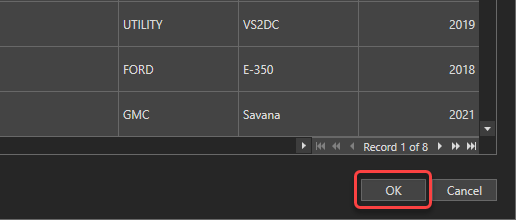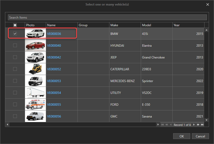 You have to select one or more vehicles to which you want to add service reminders. For our example, we will use the vehicle "VE000036":