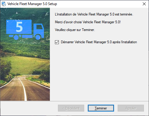 4. At the end of the installation, click "Finish" to launch Vehicle Fleet Manager 5.0 :