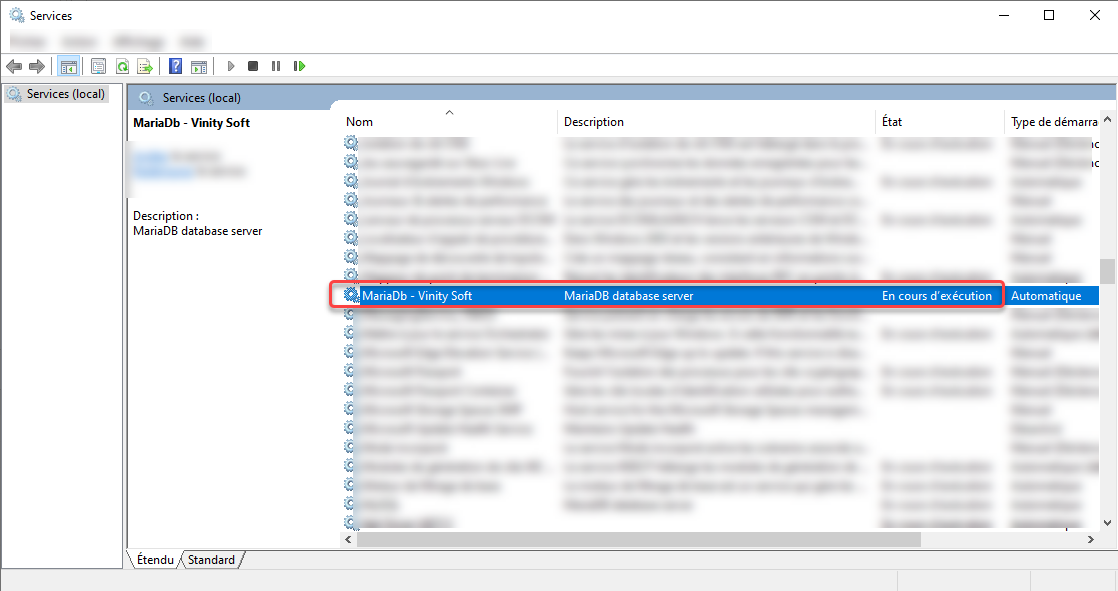 If you look at the services running on your computer, you should now see the "MariaDB - Vinity Soft" service running: