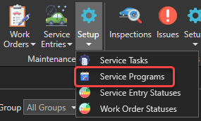 A service program is a group of service schedules and allows you to automatically apply a set of service reminders to one or more vehicles sharing the same preventive maintenance needs, at the same time or meter interval. When you apply a service program to a vehicle, the service reminders contained in the service program are automatically added to the vehicle's service reminders.