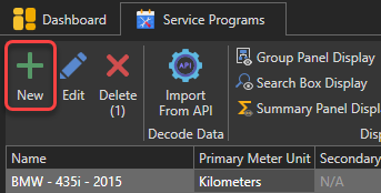 A new service program will be created. You must now add Service Schedules to this service program. To add a service schedule, in the list on the right (Service Schedules), click on the "New" button: