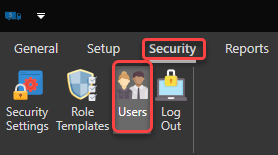 To configure the 'admin' user, click on the "Security" tab then on the "Users" button: