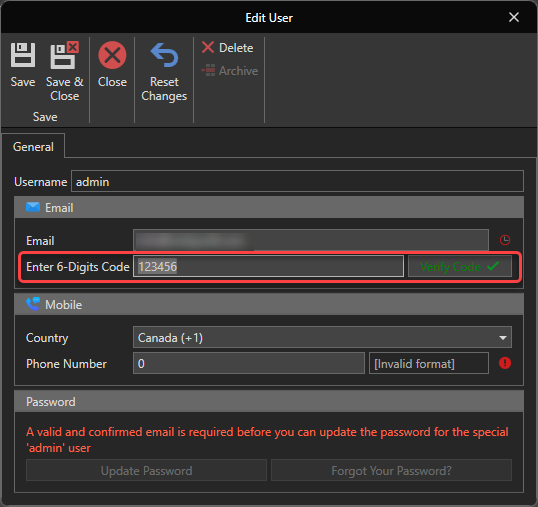 An email containing a 6-digit verification code will be sent to the address entered. Check your emails and enter the 6-digit code received in this box then press the "Verify Code" button: