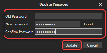 You can now change the password for the 'admin' user. To do this, click on the "Update Password" button: